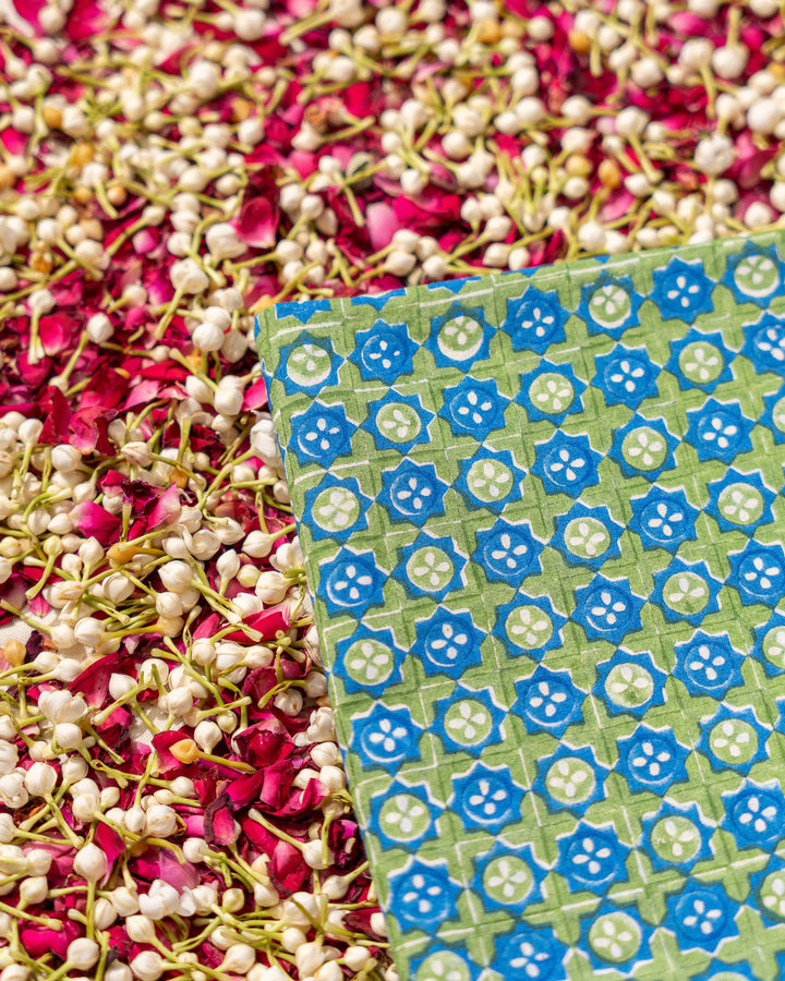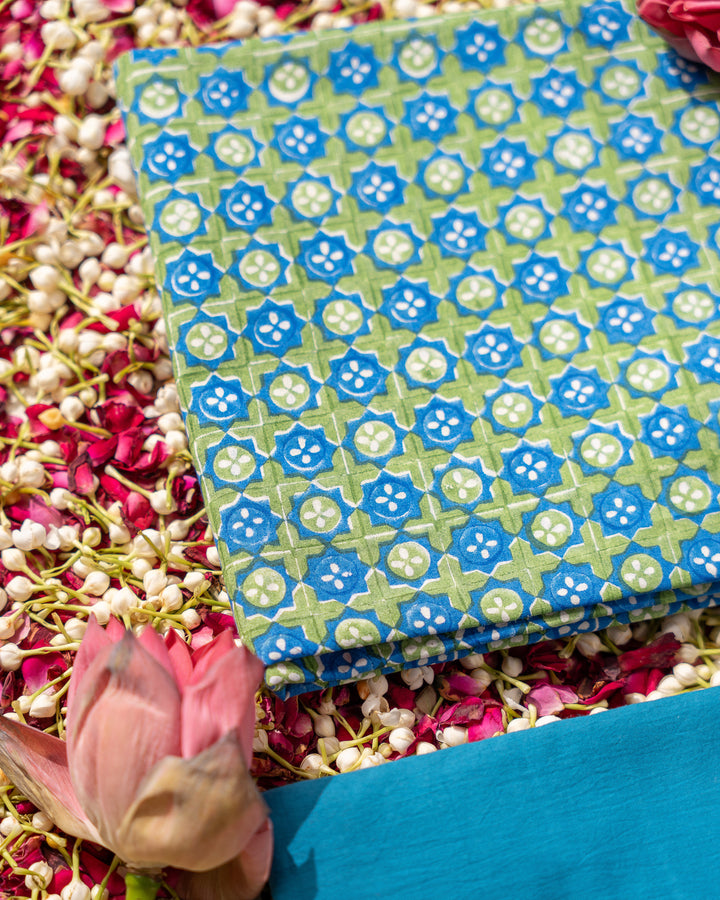Sitara is a simple geometric print, inspired by the rich Anthangudi tiles of Karnataka, This print is good for a shirt for men who like to maintain a minimal pattern or an everyday garment of any style. Handblock printed in Rajasthan, you will never have to worry abt the depth of design, its a simple print made dynamic with 5 colours.
