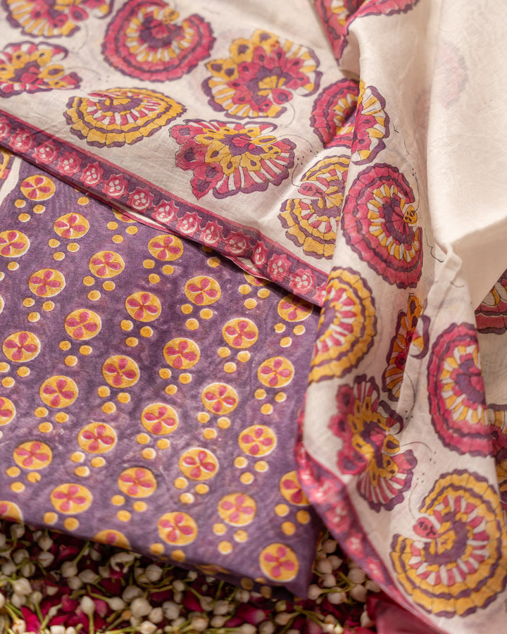 Material- Heavy Chanderi (50% cotton, 50% Silk) Width- 44 inches Technique- Hand Block Printing Phulwari is a Maximal Floral print,...