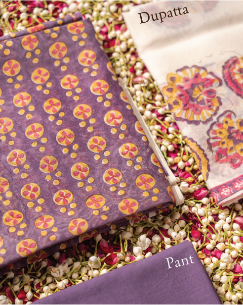 Phulwari is a Maximal Floral print, imagine a row of Indian winter flowers and their colours embodied onto fabric. The colours are subtle and good for day events, flowy dresses and a happy mood.